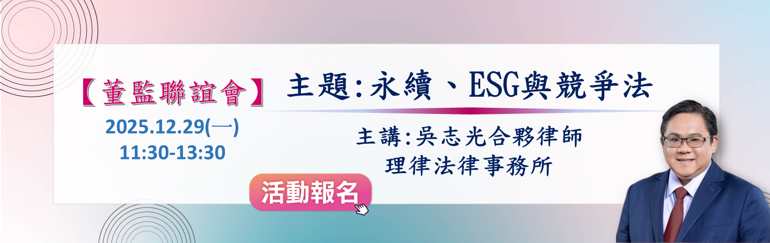 [董監活動]【董聯會】永續、ESG與競爭法(sustainability , ESG ,and competition law)